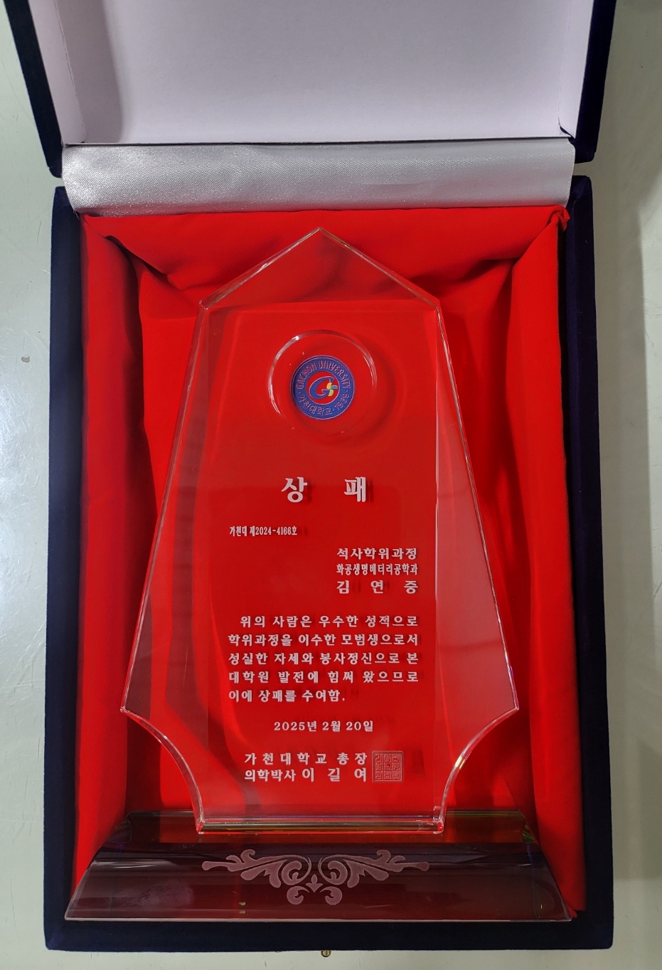김연중 석사가 2025년 동계 졸업식에서 총장상을 수상했습니다.